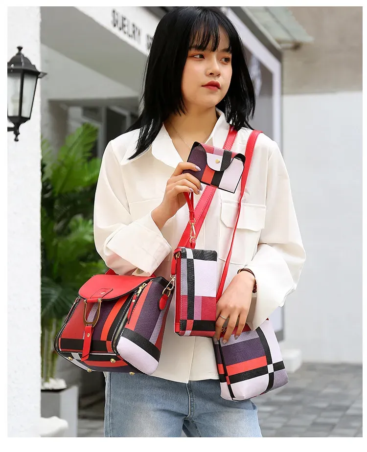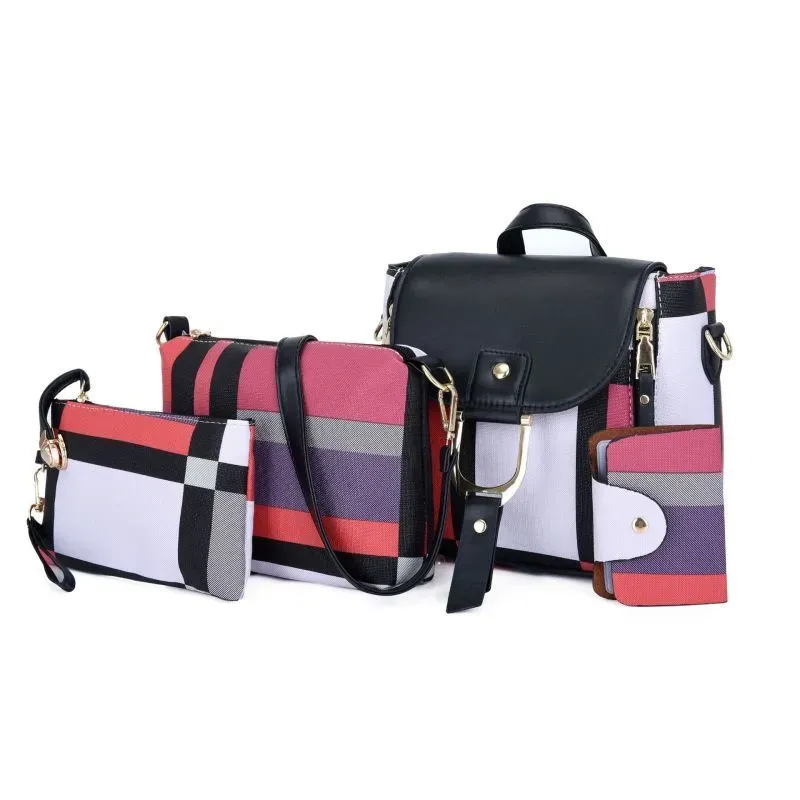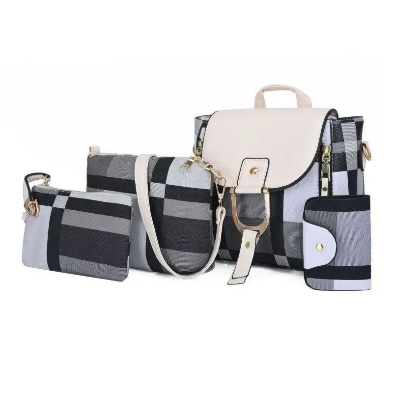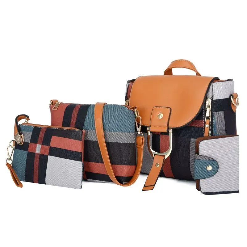 4 In 1 Women Fashion Plaid Pu Square Shoulder Bag Four-Piece Set