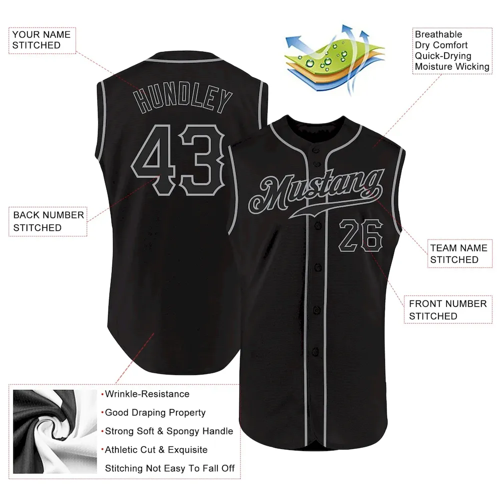 Custom Black Black-Gray Authentic Sleeveless Baseball Jersey