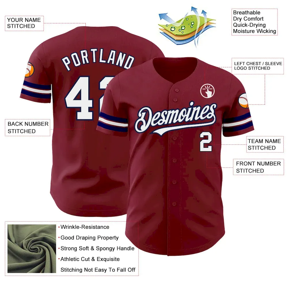 Custom Crimson White-Navy Authentic Baseball Jersey