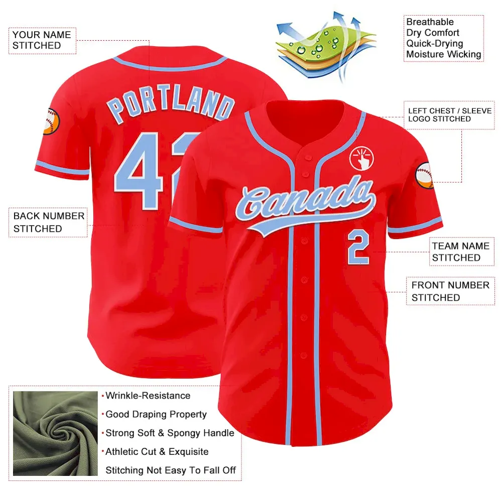 Custom Fire Red Light Blue-White Authentic Baseball Jersey