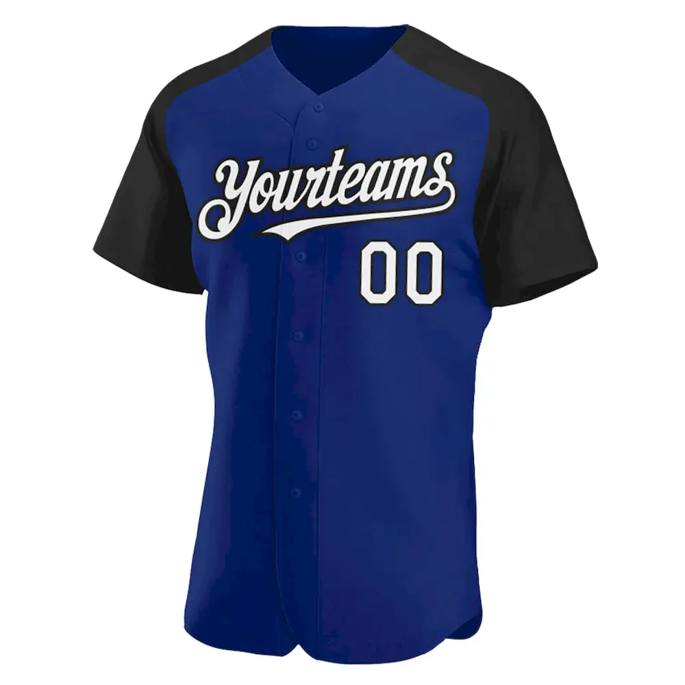 Custom Royal White-Black Authentic Raglan Sleeves Baseball Jersey