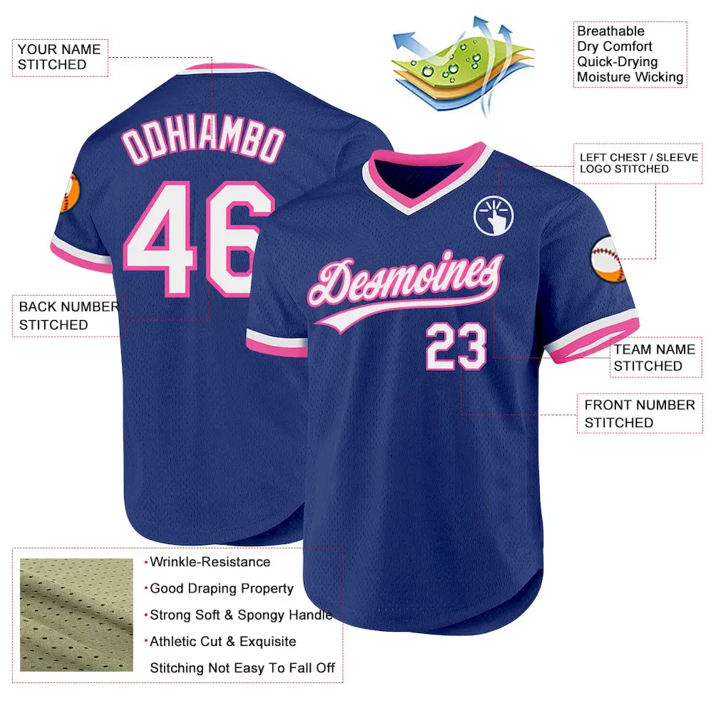 Custom Royal White-Pink Authentic Throwback Baseball Jersey