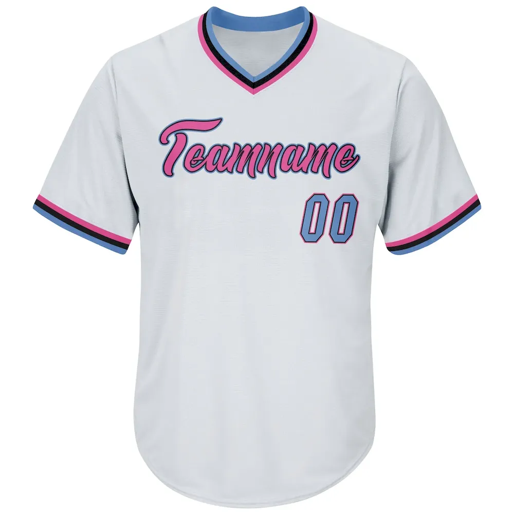 Custom White Light Blue-Pink Authentic Throwback Rib-Knit Baseball Jersey Shirt