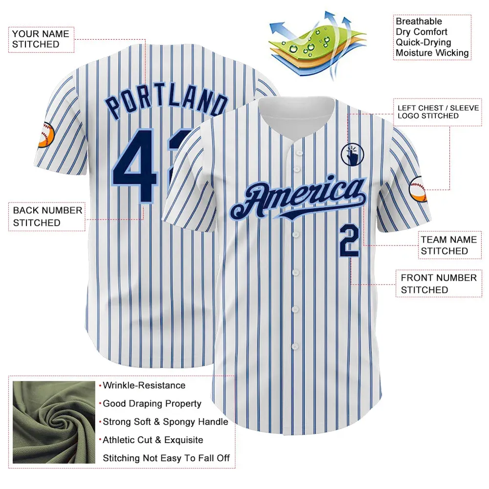 Custom White (Navy Light Blue Pinstripe) Navy-Light Blue Authentic Baseball Jersey
